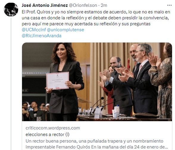 El profesor Antonio Jiménez de las Heras acaba de publicar en Twitter lo siguiente: